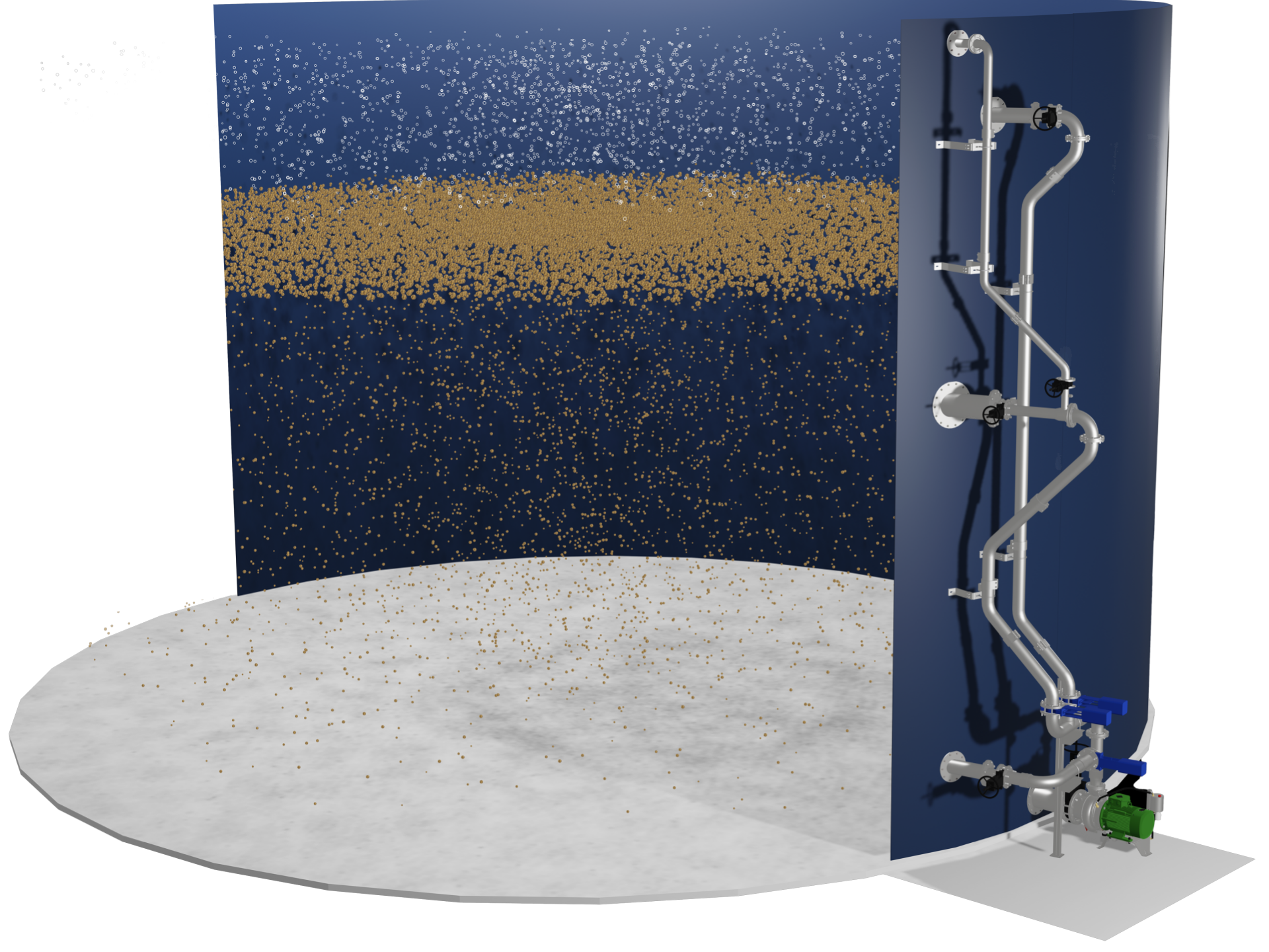 The system has all its mechanical components located outside the tank, thus allowing all service to be performed on the GasMix system without first opening or emptying the tank.